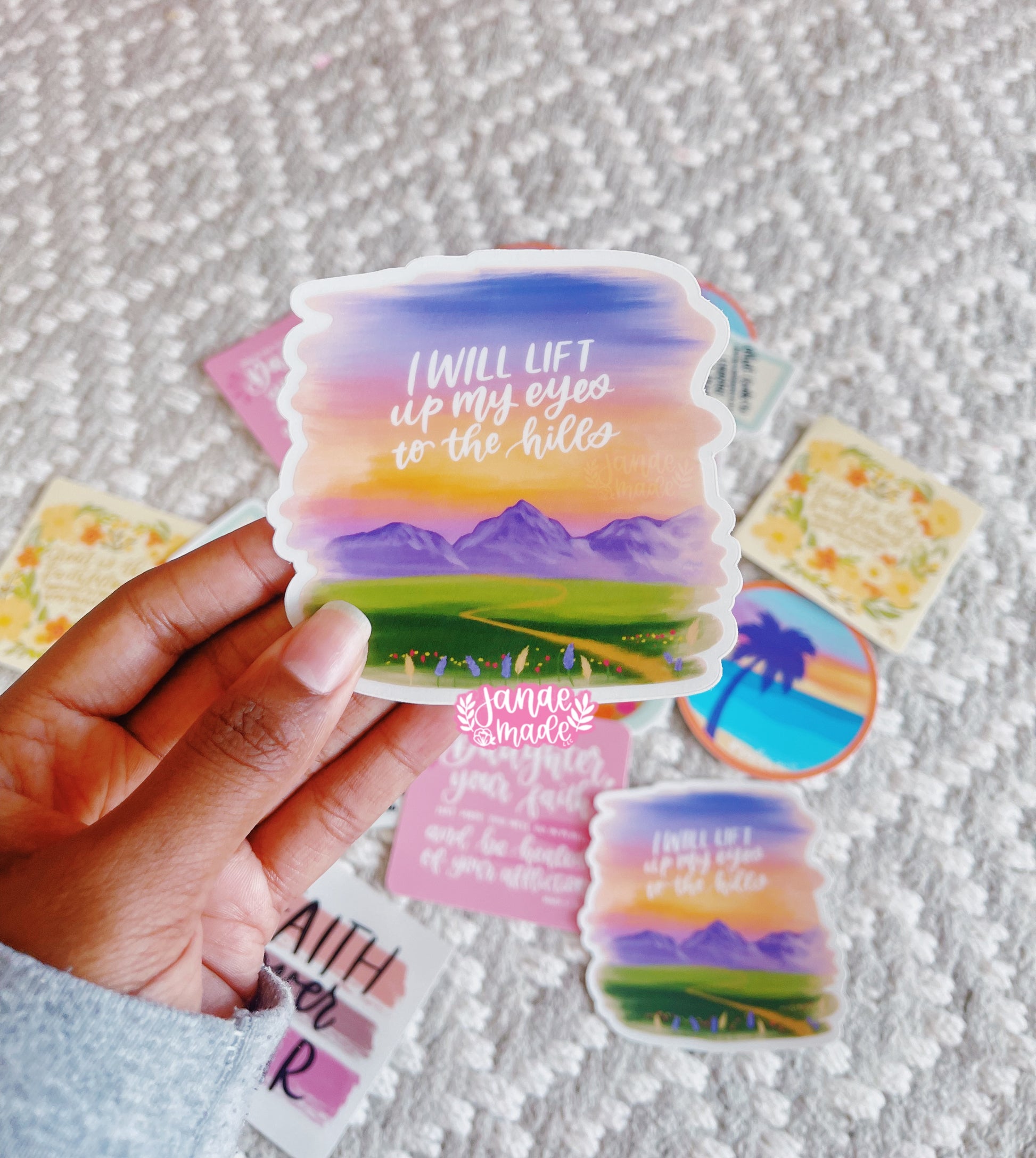 This sticker is inspired by Psalm 121, specifically verses 1&2.