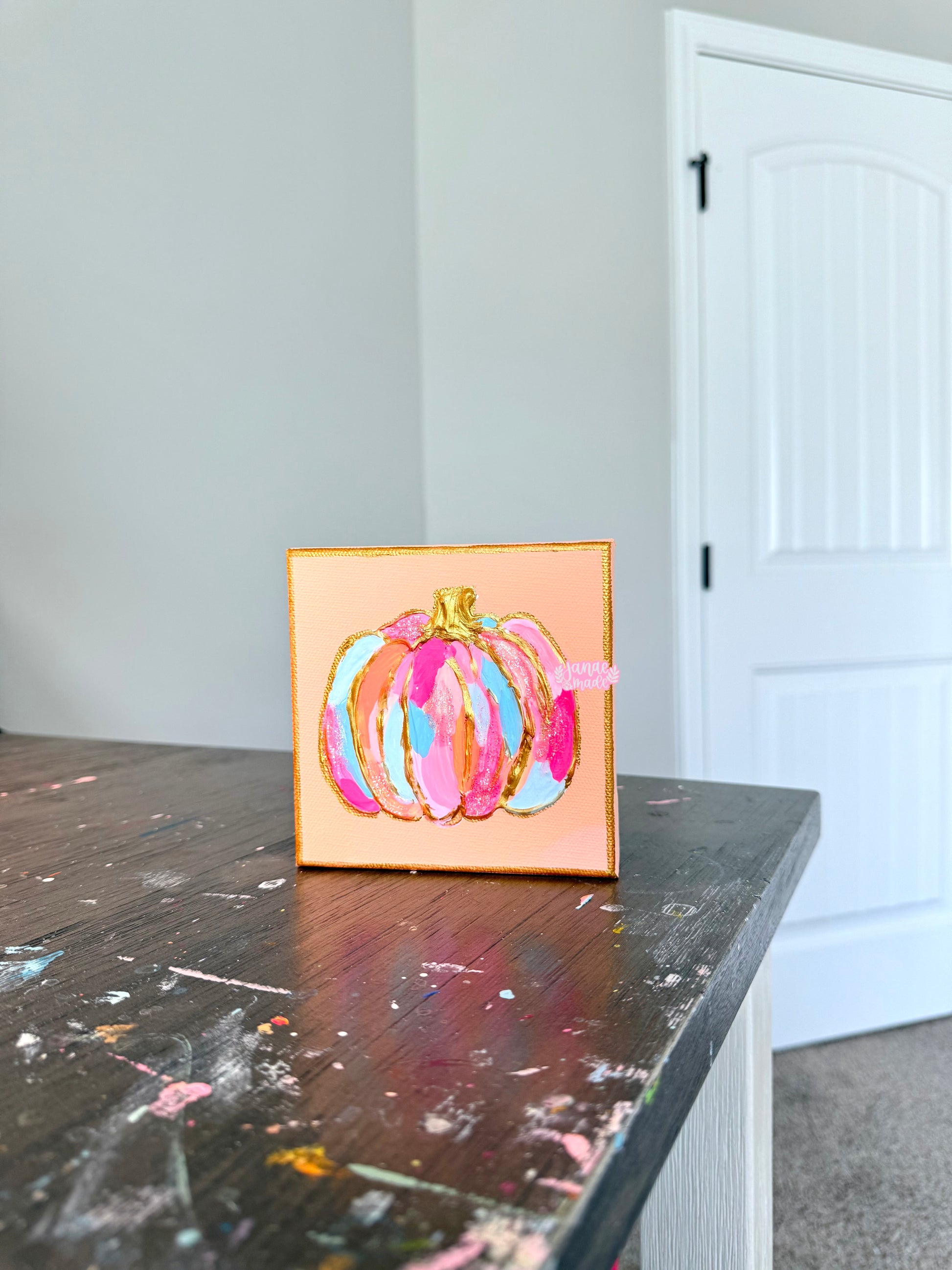 Spruce up your space with this one of a kind fall decor piece! This vibrant canvas features pastel hues, streaks of gold, and a 3-D painted look which makes for a beautiful and unique addition to your space!